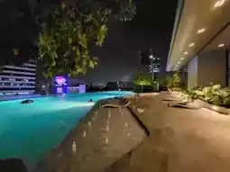 Somerset Rama 9 is located between MRT Phra Ram 9 Station and Cultural Center Station. It is best to walk to the hotel from Phra Ram 9 Station, where the sidewalks are smooth and even. The rooms are well-equipped, featuring a large-capacity refrigerator and washing machine, with free laundry detergent provided. The swimming pool and children's playroom are on the 8th floor. Before check-in, hotel staff can assist with using the facilities, but a key card is required to operate the elevator.