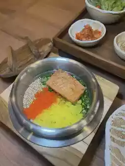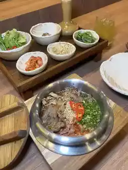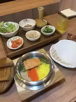 🍚 The rice is served as a set, including baked rice, homemade side dishes made by the restaurant, and soup to pour after eating the rice and mix with the slightly crispy bottom rice that smells like a pan. Eat it like rice porridge, very delicious and much loved.
