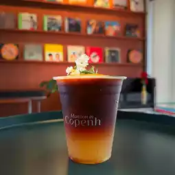 Mansion in copenh is a coffee shop with a very good mood and tone. The colors are bright and colorful but blend perfectly. The place is very beautiful with great lighting. If you sit in the outdoor area, when the sun is down and the breeze is blowing, the atmosphere should be nice. There are quite a few photo spots. The seating inside the shop can accommodate a decent number of customers. The menu offers a variety of choices including drinks, tea, coffee, and also baked goods. The staff are attentive and welcoming. It is definitely another café you shouldn't miss.