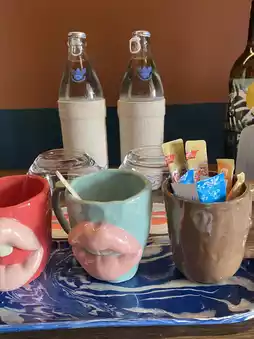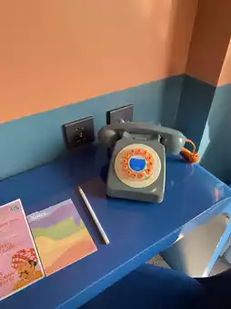 The inside of the room is also very cute with pop accessories like the phone and cups 🎀