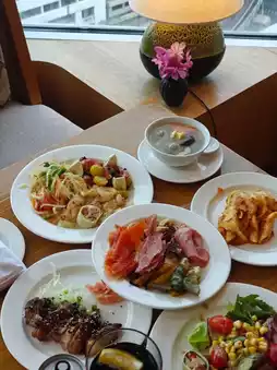 The executive lounge still exudes a strong classical atmosphere, with afternoon tea offering only small snacks and freshly squeezed juice. During happy hour, waiters circulate with champagne on silk scarves, serving mostly Western-style items. Although the green papaya salad is a highlight, it’s not filling, so just enjoy the atmosphere as the city lights come on.