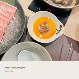 Hitori Shabu is an authentic Japanese-style single hot pot restaurant, featuring the concept of "delicious alone," giving you the freedom to choose from a variety of premium broths and meats such as Wagyu beef, Charolais beef, or Kurobuta pork. All ingredients are fresh and served with a set of vegetables and special side dishes like abalone, lotus root, and mushrooms. The broth options include clear soup, Hitori Kombu, Tonkatsu, and truffle soup, all freshly prepared right in front of you.