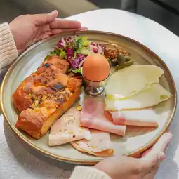 🍳 TIMO's Deli Brekkie is a full breakfast with soft-boiled eggs, pistachio mortadella, prosciutto cotto, provolone cheese, and fresh salad served with soft focaccia bread and delightful sides. I can say a good day starts with this plate.