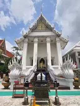 If you are looking for a peaceful place to calm your mind and pay homage to sacred things to enhance your good fortune in life 🙏🌟 We recommend Wat Nak Prok, one of the royal temples in Phasi Charoen, filled with a serene atmosphere, beautiful art, and deep faith 💖🕊️