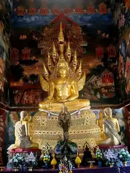 🙇♀️ Pay respects to “Luang Pho Nak Prok,” the sacred Buddha image in the Nak Prok posture enshrined in the ubosot, allowing devotees to pay homage for good luck 🌈🐍
