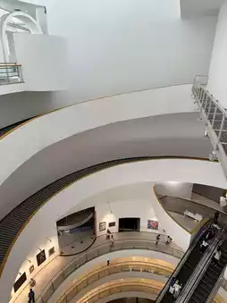 · White curved exterior comparable to New York’s Guggenheim Museum