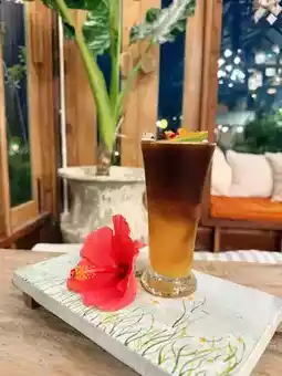 ✨ A Lanna-style cafe in the middle of a garden with an atmosphere that truly feels like being on a mountain, surrounded by trees and lush nature. The shop is decorated with bamboo, rattan, and local woven fabrics, giving a warm and simple feeling.