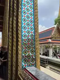 · Main Hall: The main hall of Wat Phra Kaeo, where the Emerald Buddha is enshrined. The interior and exterior are lavishly decorated with gold, glass, gems, and colorful porcelain tiles, exemplifying Thai Buddhist architecture.