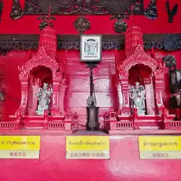 ðRecommended Because: Inside the Guan Yin Shrine at Chokchai 4, on the front left side from the entrance, there are Sakyamuni Buddha, Thao Suranari, Hok Lok Siu, Eight Immortals, Bodhisattva Vethiputra, Thao Virulhok Maharaj, Tua Lao Ia (Hieng Busa Huk Jow), Thao Thotarat Maharaj, Goddess Tap Tim, Ji Gong Huk Jow, Xie Huang Gong, Shrine of the Wealthy God, Asurindra Rahu, Deity Achanai, Tiger God, King Taksin, King Naresuan the Great, Cai Shen Ye Gong, Tai Hong Gong, and Mother Earth Goddess.