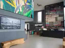 ⭐️ The hotel features beautiful and modern decor, starting from the eco-friendly lobby. The lobby is decorated with second-hand clothes reflecting the nearby Chatuchak market area, with various paintings. The location is excellent, near MRT Kamphaeng Phet Station and Bang Sue Central Station, close to the Red Building selling vintage items, Chatuchak Park, and the Indie Market. You can stroll and shop easily. Opposite the hotel is the Or Tor Kor Market, selling quality products and grade A fruits.