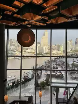 • Extensive floor-to-ceiling windows overlooking the iconic Chao Phraya River, with stadium-style mezzanine seating echoing the riverbank views  .