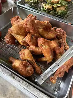 Kanom Jeen Mor Pleng is a shop with a special Kanom Jeen recipe, offering a variety of sauces to choose from. There is a buffet of many types of vegetables available for free self-service. The fried chicken is very crispy and delicious. They also have fried dishes and other menu items like shrimp paste fried rice and fried rice. The shop serves a generous amount of Kanom Jeen with sauce, very filling, affordable, and tasty. There are also dessert options with shaved ice served in large portions. The atmosphere is chill, suitable for both lunch and a mid-morning to afternoon stop. Come and try it out!