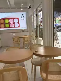 A cute Japanese-style dessert cafe with a minimalist white tone. The highlight of the shop is the adorable seal-shaped mochi, available in several flavors such as Japanese purple sweet potato, red bean, and raspberry. The mochi dough is soft and chewy, with a slightly sweet filling that perfectly complements the dough. They also offer large strawberry daifuku filled with juicy fresh strawberries and sweet red bean paste. The fresh strawberries are big, and the daifuku is incredibly soft. There is also an egg tart menu featuring thin, crispy puff pastry layers filled with lightly sweetened egg custard. Delicious, fragrant, and absolutely delightful—definitely a must-try! Perfect for those with a sweet tooth who love cute Japanese-style treats and want to take adorable photos.