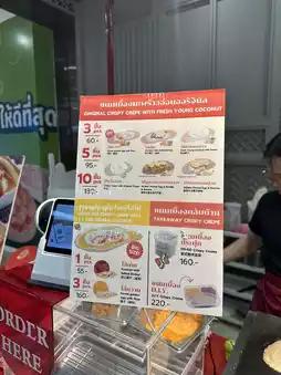 Honeybee Sweet Crispy Pancake is the ultimate legendary crispy pancake 🐝✨ Thin, crispy, and fluffy batter that cracks loudly when bitten. The taste is not overly sweet. The sweet filling uses smooth, fragrant egg cream, sprinkled with golden threads and young coconut to add aroma and texture. It's so delicious you can't stop chewing. The savory filling is just as amazing, with a balanced sweet and salty flavor, large pieces of young coconut providing the perfect richness. Plus, they use quality ingredients, made fresh piece by piece, earning the Michelin Bib Gourmand award for several consecutive years. The price is 10–15 baht per piece, which is very worth it considering the taste and craftsmanship. During peak times, you might have to wait in line, but it's definitely worth the wait. Perfect for snacking or as a gift. Thai dessert that is crispy, fragrant, sweet, and rich all in one—only Honeybee can deliver this.