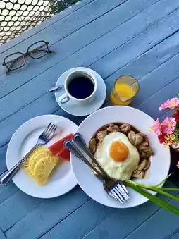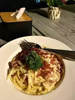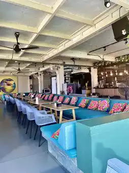 Most customers are foreigners. There are a variety of drinks and food available. The restaurant has 2 floors; the rooftop on the upper floor requires a reservation.