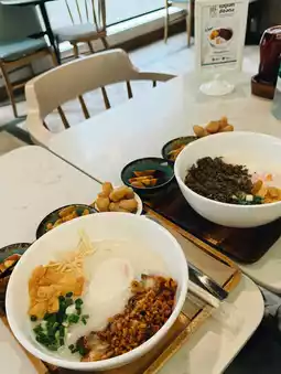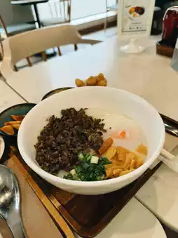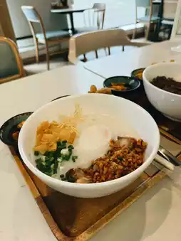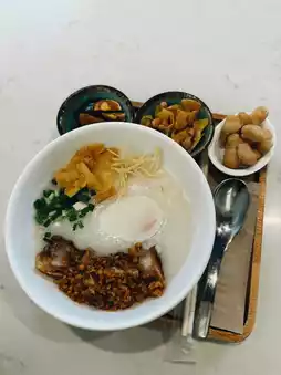 ✨ The recommended dish is Hong Kong Pork Congee (125 THB), a smooth and rich congee with a balanced flavor, served with soft-boiled egg, century egg, minced pork, and crispy yet tender fried shrimp spring rolls as toppings, creating a perfect taste combination.