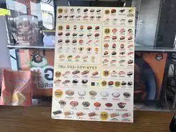 This is a sushi restaurant with multiple branches in Thailand. This branch is located at the PTT gas station on Srinakarin Road, Samut Prakan Province. Parking is available in front of the store. Inside, there are not many seats. There is a sushi bar where you can pick your own sushi, or you can order sushi to be freshly made by the staff.