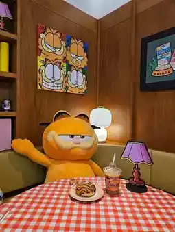 As for the food and drink menu, the regular menu is still available to order. The menu collaborated with the orange cat Garfield includes the following: