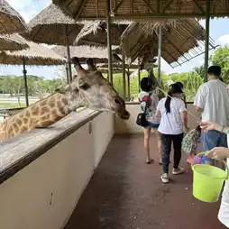 Watch these adorable 2-meter-tall creatures graze on leaves right before your eyes. You can even touch their eyelashes!
