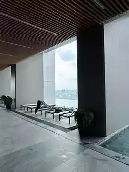 This hotel has two swimming pools, on the 22nd and 37th floors. Guests can use both pools during their stay. Upon check-in, you also receive two complimentary non-alcoholic drinks during happy hour. The hotel offers an app where you can request any needed services and leave messages in Chinese on your phone, somewhat like having a personal butler—very thoughtful service. The location is also very convenient. There is a 7-11 just downstairs to the left, and another convenience store on the 2nd floor towards the BTS direction, which is open until 10:30 PM. The convenience of this hotel is really great!