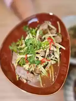 Recommended dishes: Spicy Mackerel Salad, Stir-fried Mackerel with Holy Basil, Sour Curry with Acacia Omelette and Shrimp. Although these are simple home-style dishes, the flavors are extraordinary, and the prices are friendly and affordable. The restaurant is beautiful with a great atmosphere and several seating areas.