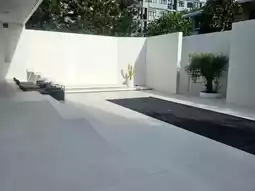 Sandstone table + curved chairs that look minimalistic but very stylish, making every photo look great