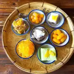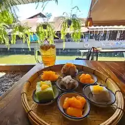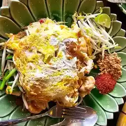 Traditional Pad Thai stir-fried using tamarind sauce. This shop roasts its own chili and peanuts, stir-frying one pan at a time. The noodles are chewy and soft with a balanced flavor. The shop also offers Thai desserts. The atmosphere is in a nearly 100-year-old wooden house by Klong Bang Luang at the Klong Bang Luang Floating Market in the Thonburi area. The shop is open from 11:00 AM to 5:00 PM.