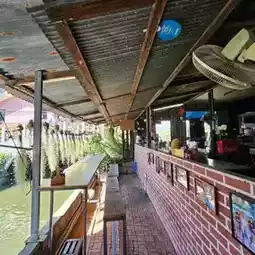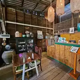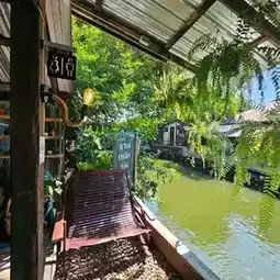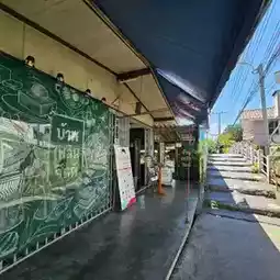📌 Landmark 👉🏼 It’s an old wooden house located at the foot of Wat Kamphaeng Bang Chak bridge (locals call it Elephant Bridge). Motorcycles can pass on the road in front of the shop. The shop has a waterfall flowing from the roof, visible from any angle.