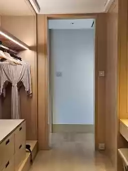 To the right of the entrance is a walk-in closet passage that leads to the wash area. Inside, there is a dressing table, convenient for ladies to do makeup.