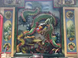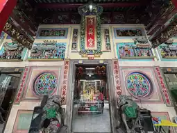 The moment you enter, the air is thick with the scent of incense and the faint sound of temple bells. The altar is adorned with offerings—fruits, flowers, and intricate paper ornaments—while red and gold details wrap the place in a warm glow. The craftsmanship is beautiful, from the carved wooden beams to the painted panels telling old legends.