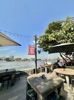 A trendy café in an old warehouse decorated in a Chinese-industrial style, with views of the Chao Phraya River. Great coffee, delicious desserts, and perfect for photos.