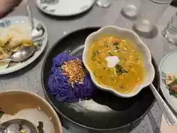 The food was solid â rich flavors and authentic taste, especially loved the crab curry and the pomelo salad which was refreshingly tangy. The curry with blue pea vermicelli was a nice twist and very vibrant on the plate. Desserts were sweet and comforting, rounding off the meal well.