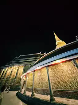 • 🌙 A beautiful temple at night, with warm lights illuminating the shimmering golden chedi, like stepping into a movie set.