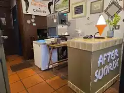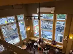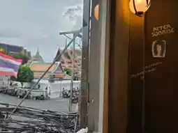 Atmosphere/Location - This old shophouse cafe is located on Maharat Road. The front of the shop is in Soi Pratu Nok Yung. There are small tables for taking orders and frying churros. There's also a waiting area for takeaway customers. For dine-in customers, head up to the second floor, which is accessed by a small staircase. The walkway is decorated with various pictures. Upon reaching the second floor, you'll find an order counter. The shop is spacious and not crowded, and there's a mezzanine level leading up. The highlight of the cafe is the glass-enclosed corner overlooking Wat Phra Chetuphon. In the evening, the temple is beautifully lit up with lights.