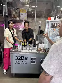From the Back of a Pickup Truck to a Craft Chocolate Bar in a Charming Old Building. 32Bar is a Tree to Bar cafe and chocolate bar that began as a small shop on a pickup truck and has evolved into a compact specialty chocolate shop in the heart of Talad Noi, fully supporting cocoa from Thai farmers.