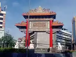 Next door is the 72nd Birthday Anniversary Arch, or Odeon Circle Arch. The center is a power-receiving point according to Chinese beliefs.