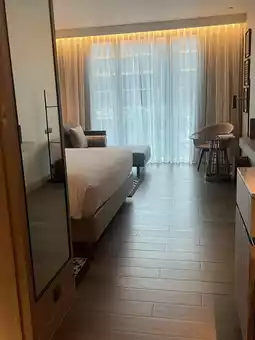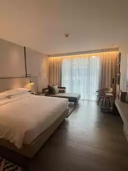 Another highlight is the large outdoor pool and 24-hour fitness center, a rare find in most hotels. Perfect for both fitness enthusiasts and those looking for a relaxing late-night swim.