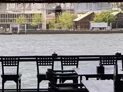 We visited during the day on a weekday. It wasn't crowded, which made for a relaxed and uncrowded atmosphere. The seats were arranged along the riverfront windows, offering a panoramic view of the Chao Phraya River. On a clear day like this, it was incredibly relaxing to watch the boats passing by and the buildings across the street.