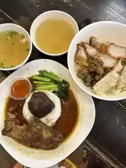 Known for their chewy thin noodles, fragrant crab meat broth, generous toppings, and large, satisfying shrimp wontons, the fresh egg noodles are made daily. The thin noodles are chewy and soft, cooked just right, and the shrimp wontons are large and firm. Their pork, red pork, and crispy pork rice dishes are tender and not greasy, and the crispy pork remains crispy even after being soaked in the broth. They also offer rice dishes like braised pork ribs, red pork, and Chinese sausage, as well as Hong Kong noodles and vegetarian options like mushroom noodles. Delicious, great value, and a great price.