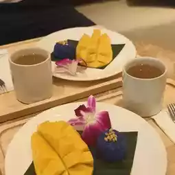 Afterward, they'll serve Thai mango sticky rice 🥭 and hot tea, which is incredibly satisfying! After leaving a review, you'll also receive a cute elephant pendant as a souvenir 🐘.