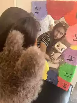 The cafe is pet-friendly — there's even a cute dog to greet visitors.