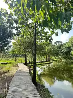 🌳 Railway Park (Vachirabenchatat Park) is a large public park in the heart of the city, filled with a variety of trees and flowers. The atmosphere is incredibly shady. There's a lake in the middle of the park, and you can even ride a paddle boat. There are also trails for cycling, walking, and jogging, as well as various sports fields. Come stroll, explore the park, relax, and exercise. It's within walking distance of Chatuchak Weekend Market.