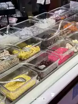 #GetDiscountsWithoutLuck These days, many people may be consuming less soy milk. I'm one of them. But when I found this shop, I felt it was perfect for mall-goers like me. The Tofu Pu Pla branch at The Mall Bangkapi is located on the ground floor in the food court. It's a kiosk, but there's seating. Unfortunately, the fried dough sticks were sold out, so I only ordered the Soy Milk Pudding with Fresh Milk for 95 baht (with extra toppings). It turned out to be delicious. The soy milk was slushy-style, with fresh milk pudding at the bottom. It was a bit too sweet, but thankfully, the soy milk wasn't sweet. You can also choose from almost 20 toppings, each with a different price.