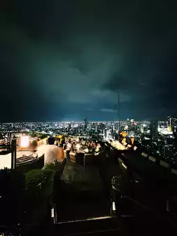 I recommend coming before sunset 🌅. The view is stunning and as the city lights turn on the atmosphere becomes magical. The music is perfectly balanced you hear it but you can still talk comfortably without hearing conversations from other tables.