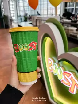 #GetDiscountsWithoutLuck Come try the "Strawberry Squeeze" at Boost Juice, CentralWorld, 7th floor. It's incredibly refreshing! It's a smooth blend of strawberries, yogurt, apple, banana, and ice. The strawberry aroma is topped off with a creamy yogurt and banana. It's perfectly balanced, not too sweet. Perfect for cooling down while shopping, or adding a little protein for a full day. 🍓✨