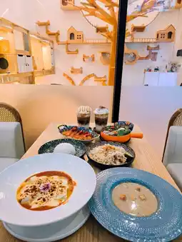 A dog and cat cafe with delicious food. The day we visited, we tried Singaporean food, and I can tell you it was delicious. The flavors were perfectly balanced and perfectly presented. Next time, we'll definitely order the same thing again. While eating, we enjoyed watching the dogs and cats play, making us want to go and play with them. They're all so adorable!