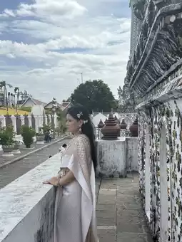 Chinese: "The morning light kisses the timeless beauty of Wat Arun 🌞 #TempleTales #BangkokMagic"