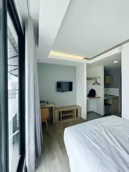 The rooms are modern and minimalist but highly functional. The beds are soft and comfortable, ensuring a good night's sleep without back pain 😴✨. The rooms are fully equipped with amenities like air conditioning, a refrigerator, TV, hot water, and high-speed internet, perfect for working.