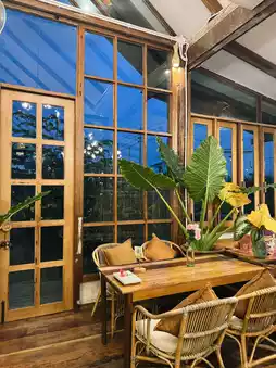✨ There are many beautiful photo spots, perfect for those who enjoy the ambiance of a cafe and a natural garden.