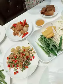 โจ The highlight is the traditional suki, with its delicious dipping sauce and rich sesame aroma. Pork, chicken, seafood, and beef are served in the same traditional style as before. They also offer popular Chinese dishes like Peking duck, roast pork, pork leg with steamed buns, and oyster omelet, all of which are flavorful and made with high-quality ingredients.